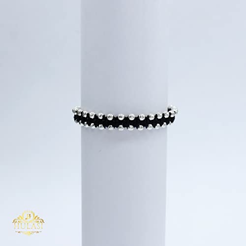 42 Ball Beads Sterling Bracelets with Black Thread (1 Pair)