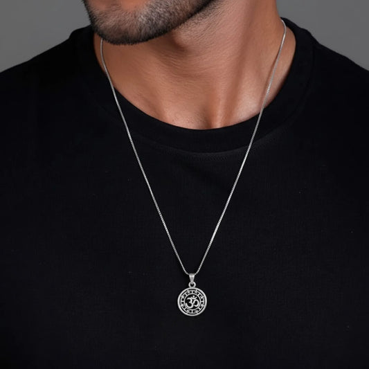Om Charm Sterling Silver Kada (Bangle Bracelet) with & Black Silver Beads