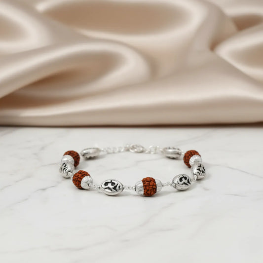 Rudraksh Beads Silver Chain Bracelet (1 Pair)