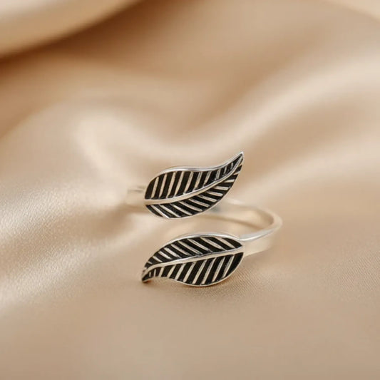 Dual Leaf Pure Silver ANTIQUE TOE-RING – Adjustable