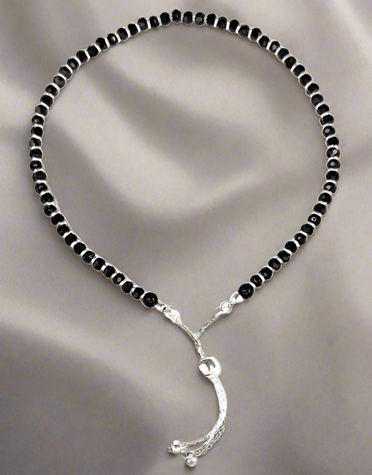 Black & Silver Crystal Bead | 925 Sterling Anklet