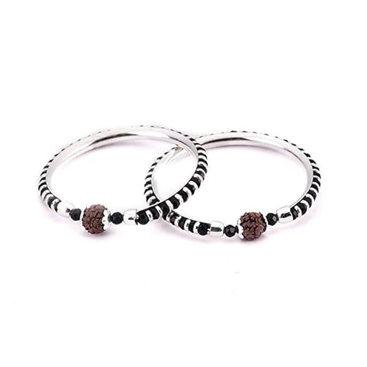 Rudraksh Sterling Silver Kada (Bangle Bracelet) with Black Silver Beads