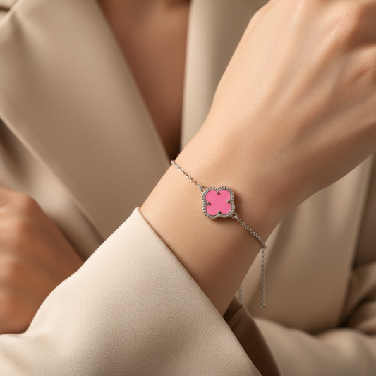 sleek pink flower bracelet | 925 sterling silver