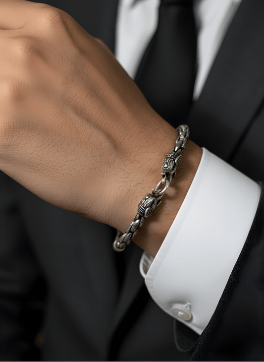 Guardian Beast Silver Oxidised Bracelet ( 39 grams )