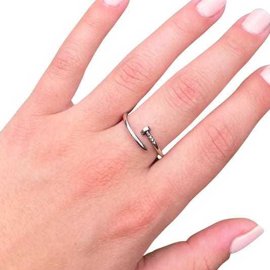 Hulasi Trendy Sterling Silver Bent Nail Design Adjustable Ring For Girls