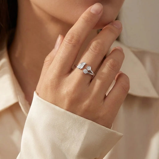 Hulasi 925 Sterling Silver Butterfly Leaf CZ Adjustable Ring for Women
