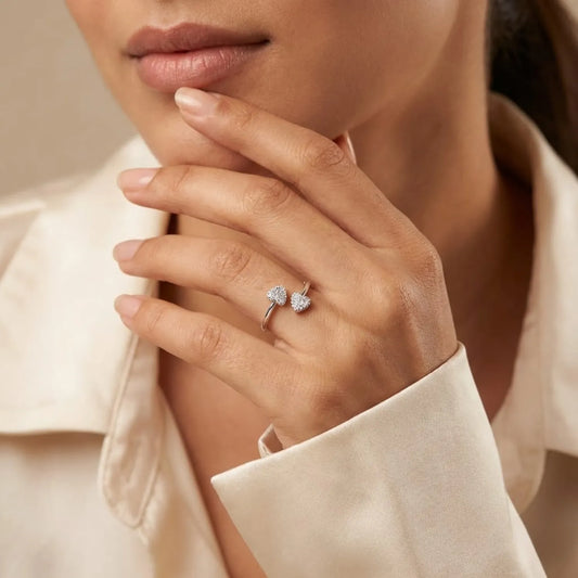 Hulasi 925 Sterling Silver Double Heart CZ Adjustable Ring for Women
