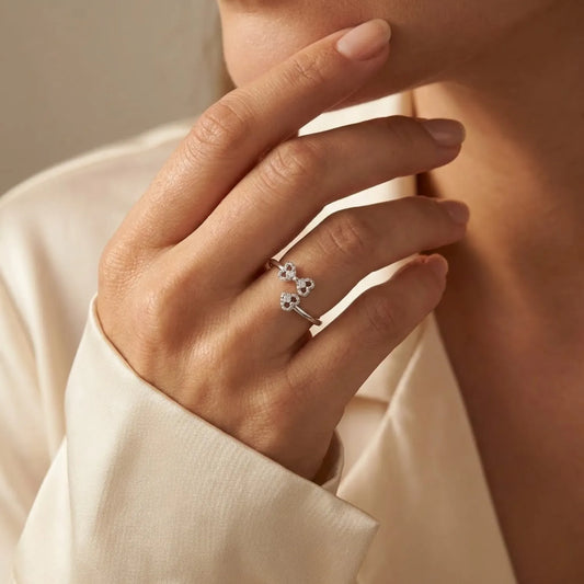 Hulasi 925 Sterling Silver Bow Ribbon CZ Adjustable Ring for Women
