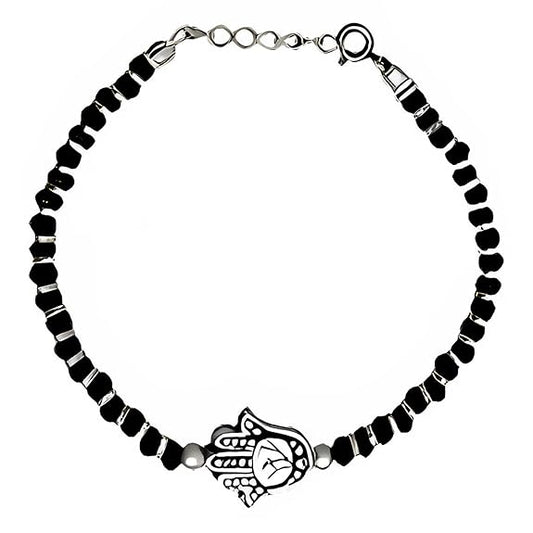 Hand & Black Silver Beads Sterling Silver Bracelet