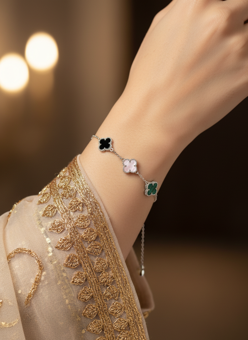 This 3 multi-color flower sling bracelet, crafted from 925 sterling silver, combines sleek minimalism with elegant charm. Its delicate design makes it an ideal gift for modern women—from teens to sophisticated ladies—perfect for daily wear or special occasions like date nights and romantic dinners. Enhance her style effortlessly with this timeless accessory that celebrates beauty in simplicity.