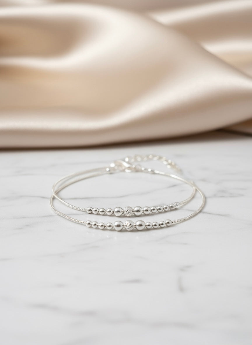 925 Sterling Silver Ball Chain Anklet Pair | Pure Silver Bead Ankle Bracelet