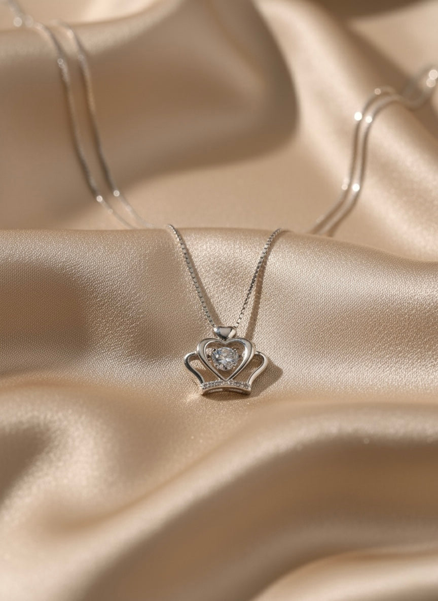 925 Sterling Silver Crown Pendant Necklace for Women