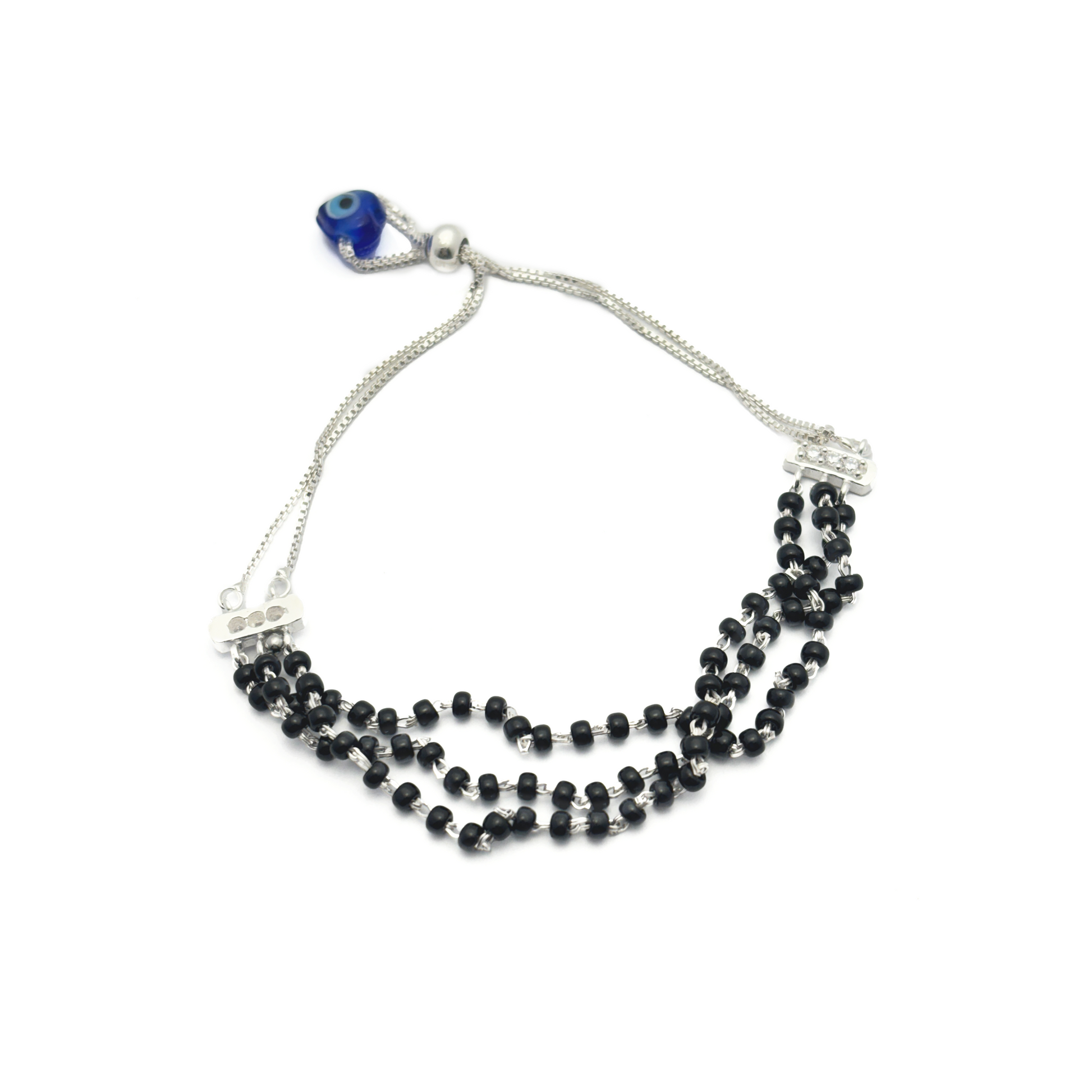 Black Beads & Evil Eye Sterling Silver Chain Bracelet