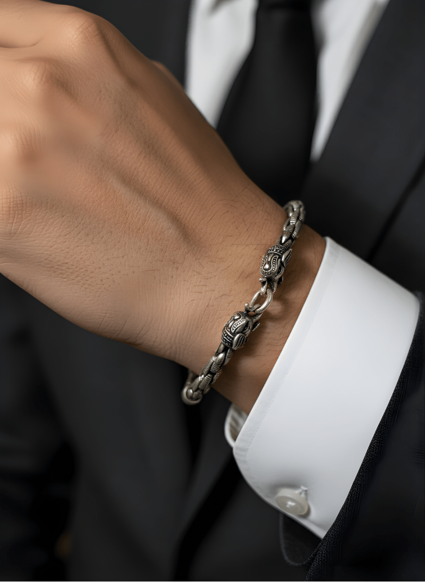 Embrace timeless charm and cultural elegance with the Elephant Guardian Oxidised Bracelet, crafted in premium 925 sterling silver. Designed with intricate oxidised detailing, this bracelet features a beautifully carved elephant motifƒ??symbolising wisdom, strength, and protection. Its lightweight yet durable design makes it perfect for everyday wear, whether youƒ??re dressing up for a special occasion or adding a touch of heritage to your casual style. A meaningful accessory for yourself or a thoughtful gift for someone special.