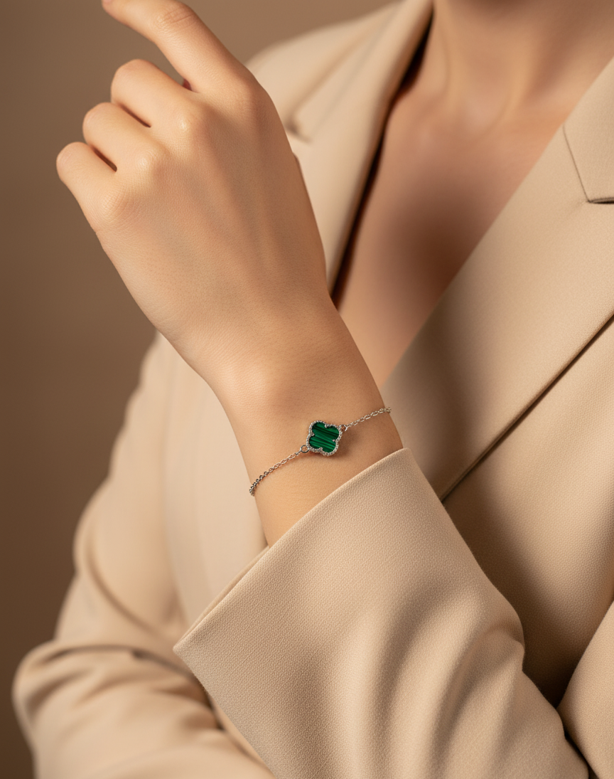This sleek green flower bracelet, crafted from 925 sterling silver, is a perfect gift for the modern woman. Its refined design suits daily wear, adding a subtle touch of elegance to any outfit while offering lasting comfort and durability. An ideal way to express appreciation with a timeless accessory.